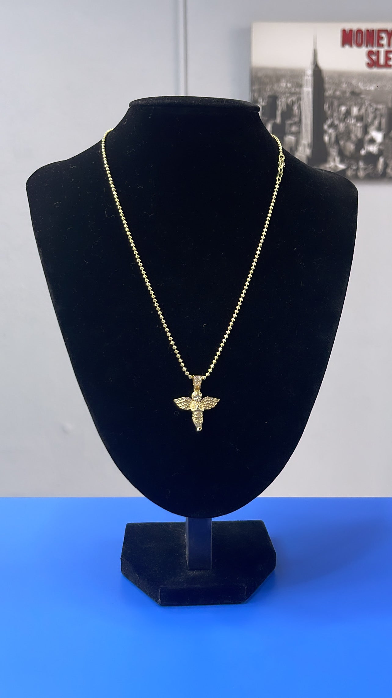 Mooncut 2mm 20” 14k sobre .925 con pendant de Ángel